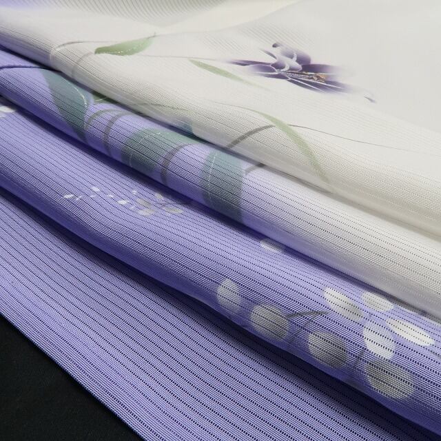 昨今、夏に和装をされる方が少なくなり希少なものとなりつつある絽のお着物は、二本の経糸を捩りながら緯糸を織り込んだもじり織で、盛夏のお召し物としてさらりとした生地質が魅力、着る方にもまた見る方にも清らかな風を感じるような涼しさを届けてくれます。