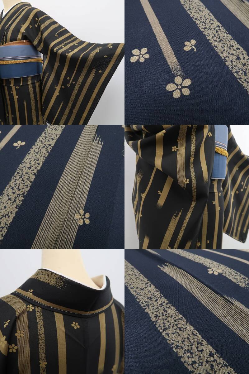 新品 紗紬 縦縞 夏着物 正絹”おしゃれを楽しむ、縞と小花の涼やかな一枚”仕付け糸付 証紙付 本場大島紬 5773
