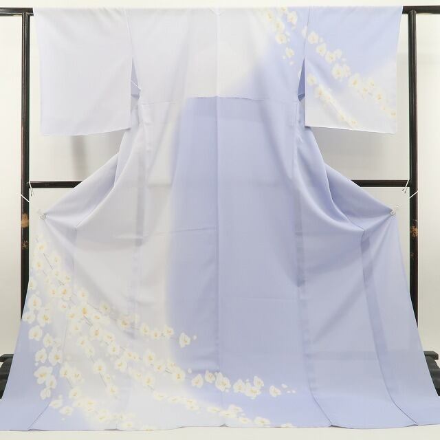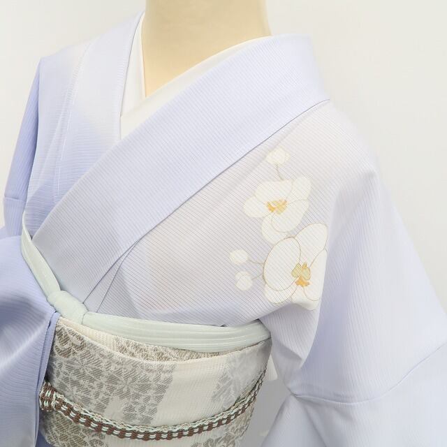 こちらのお着物は、ライトトーンの彩色で創作着物の美しさにフォーカスした季節の花柄を込めております。夏着物の透明感とともに嫌みのないさりげないセンスを表現するのに最適なお召し物です。