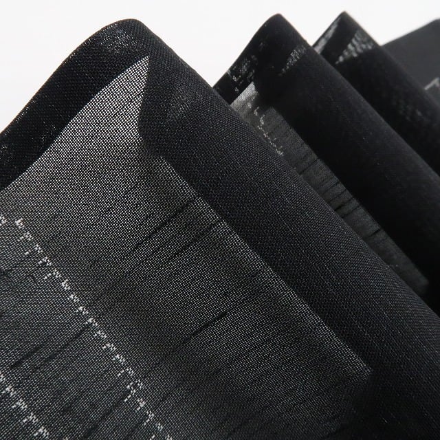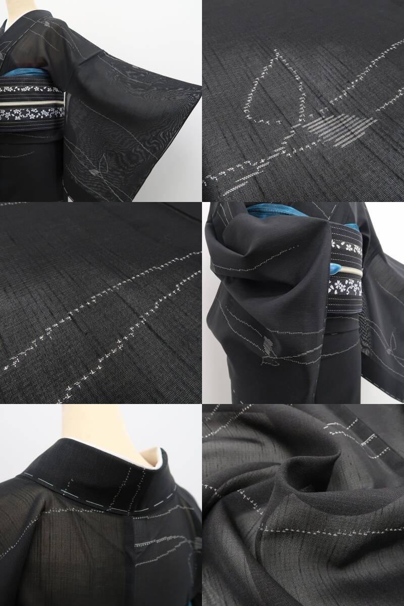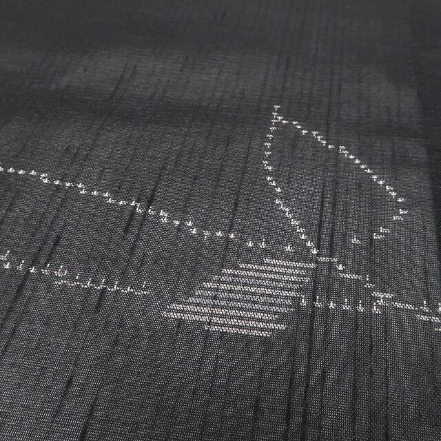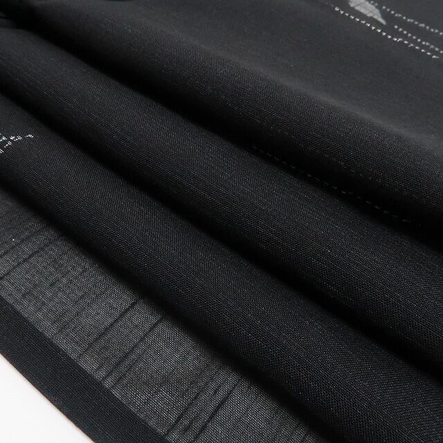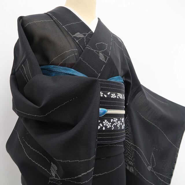 涼やかな黒の色地に描き込まれた洗練モダンなデザインライン、紗の透明感に風を趣くその表情は“夏着物の魅力”そのもの!一枚はお手元に置きたい夏紬のひと品、清々しい風合いとともに飾り気のない素朴な美しさがひと味違う夏和装の愉しみ方を届けてくれます。