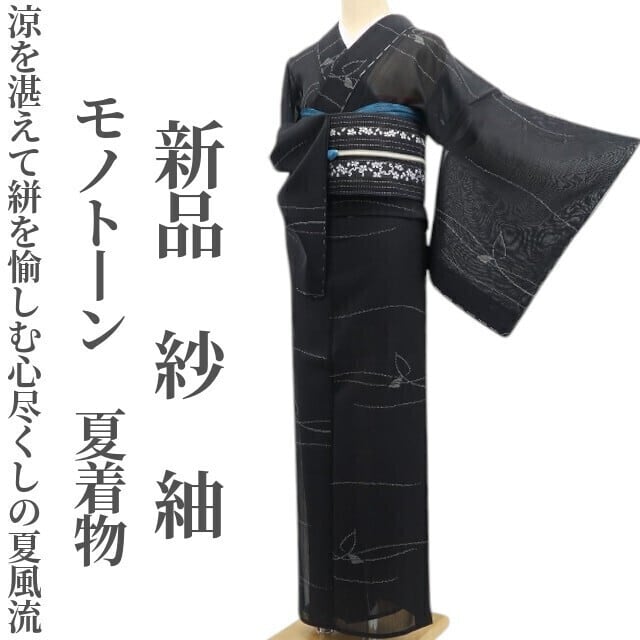 新品 紗 モノトーン 夏着物“涼を湛えて絣を愉しむ心尽くしの夏風流”正絹 仕付け糸付 紬 5807