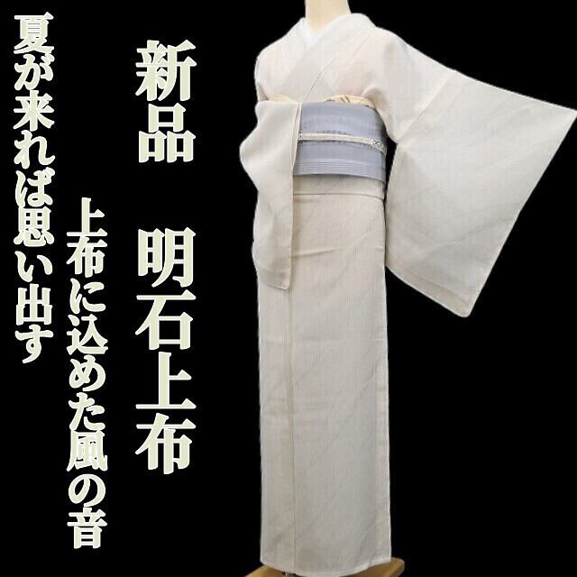 新品 夏着物 正絹“夏が来れば思い出す上布に込めた風の音”仕付け糸付 明石上布 5821