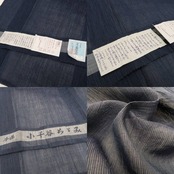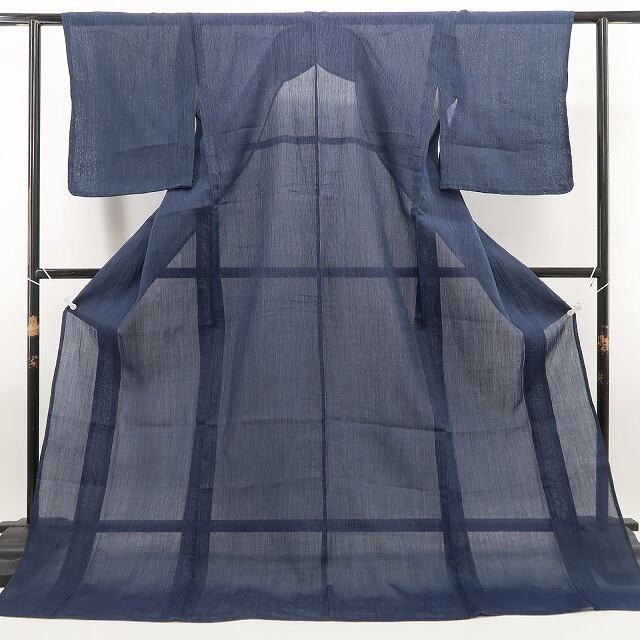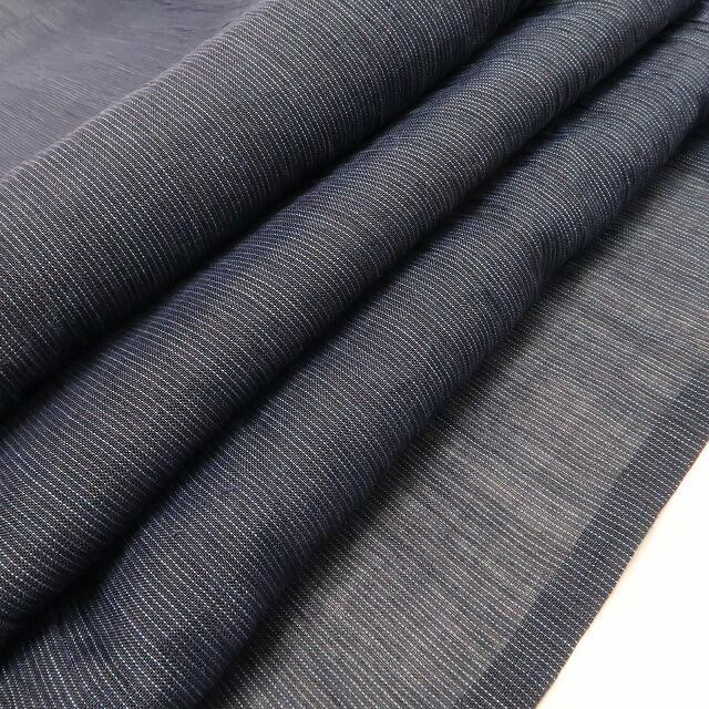 鉄紺色に細かな縦縞が走る、上品な夏のお着物。