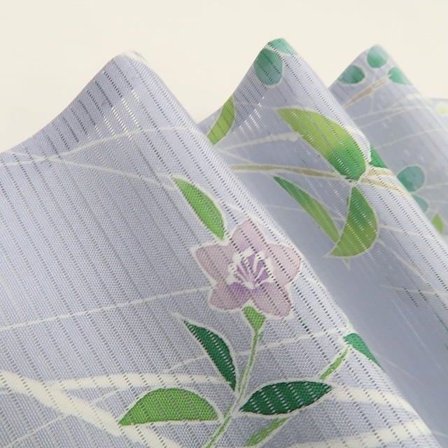 昨今、夏に和装をされる方が少なくなり希少なものとなりつつある絽のお着物は、二本の経糸を捩りながら緯糸を織り込んだもじり織で、盛夏のお召し物としてさらりとした生地質が魅力、着る方にもまた見る方にも清らかな風を感じるような涼しさを届けてくれます。