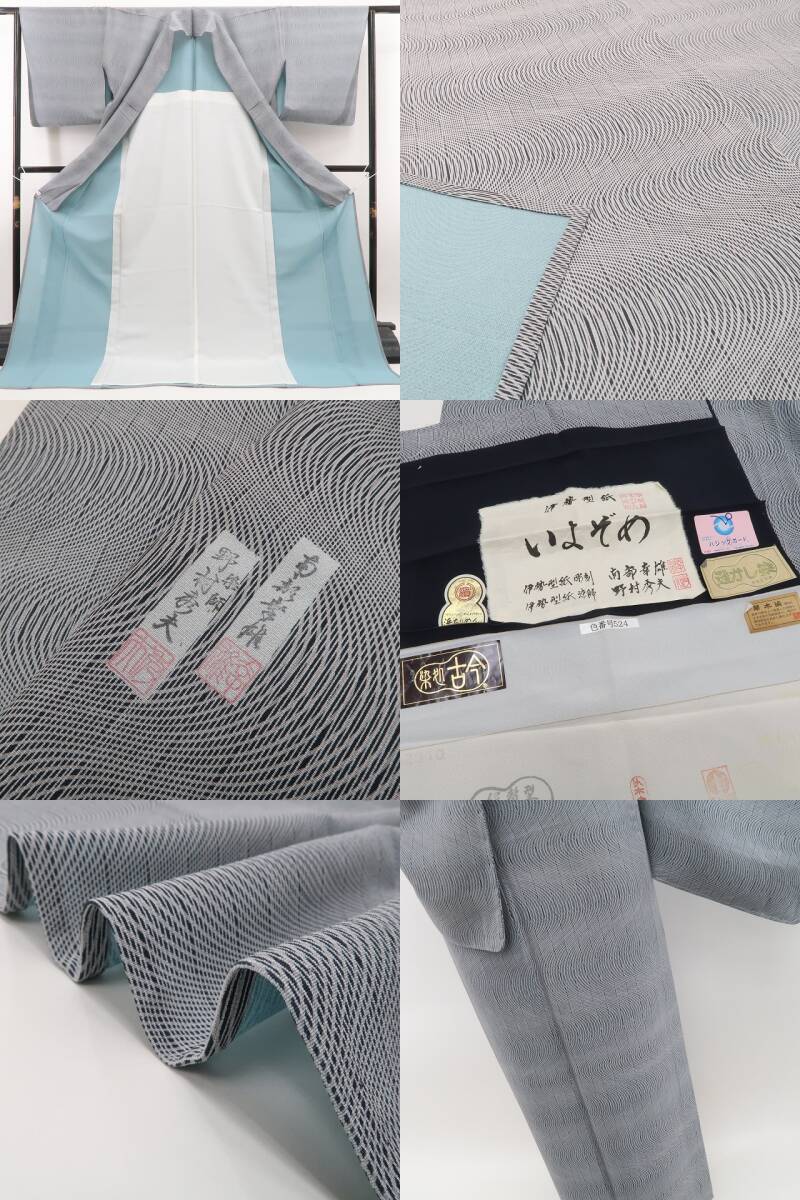 新品 夏単衣 南部幸雄 いよぞめ 夏着物 正絹”風をまとう、いと美しき型染めの世界”仕付け糸付 伊勢型小紋 5846