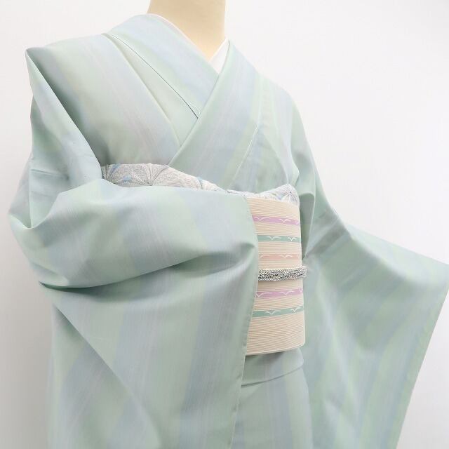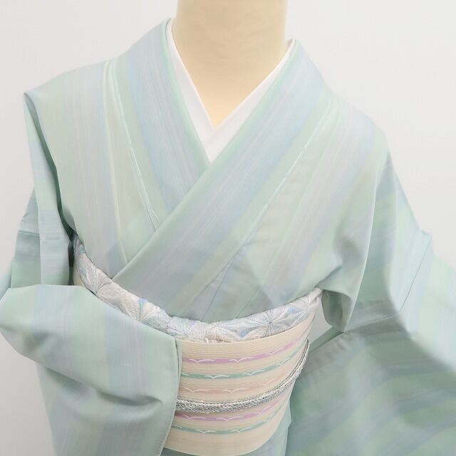 単衣は、“春から夏にかけて”また“秋から冬にかけて”など季節の変わり目などに好んで着用されますが、こちらのお着物は、盛夏の時期にもお召いただける爽やかな色柄のお品でございます。