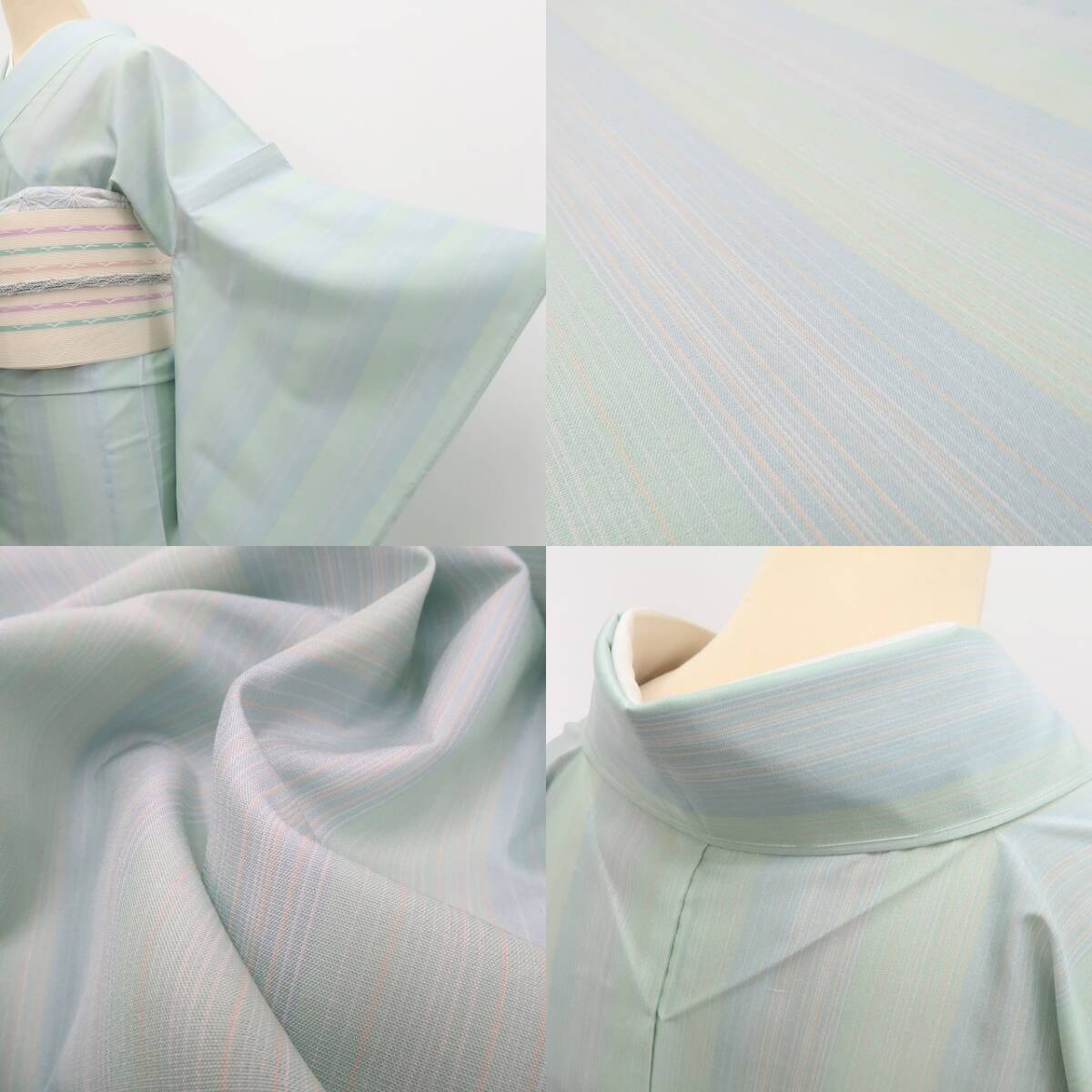 新品 単衣 縦縞 夏着物 正絹“癒しと和みの二重奏!学びを開く先人の声”証紙付 仕付け糸付 夏牛首紬 5839