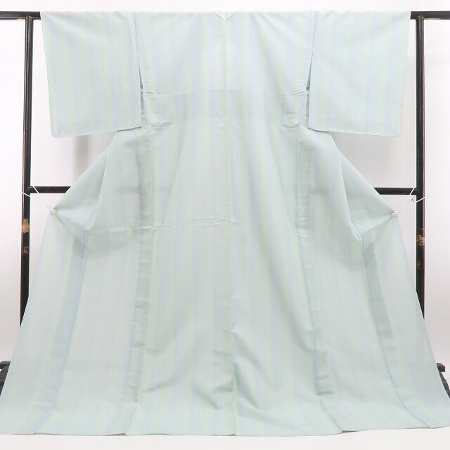 こちらのお着物は、ペールトーンの彩色で和モダンにフォーカスした創作縦縞を込めています。シンプルにして視線を釘付けにするその意匠性…夏着物の清涼感とともに嫌みのないセンスが印象的に際立つお召し物です。