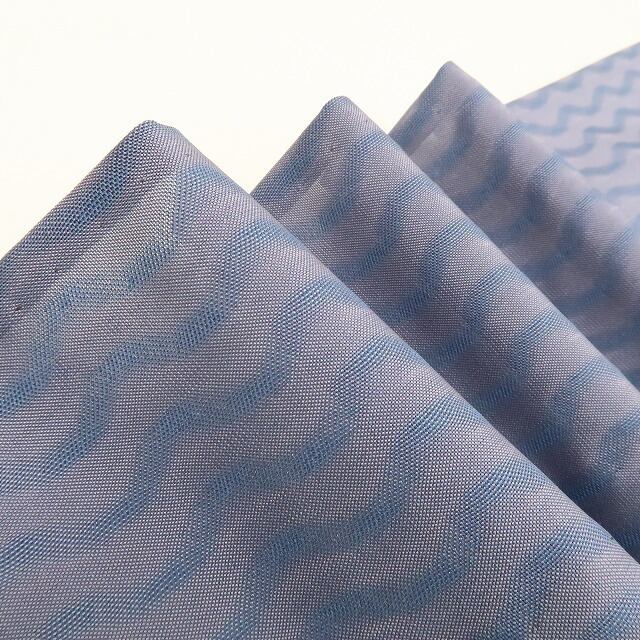 青藤色の地には、風に揺れるような曲線がさりげなく織り込まれ、見る角度によってさまざまな表情を見せてくれます。