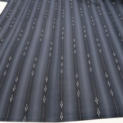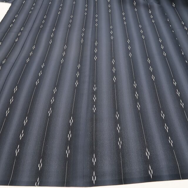 こちらは、青褐色の地に、縦の細かな柄が静かに浮かぶ一枚。