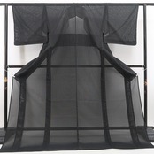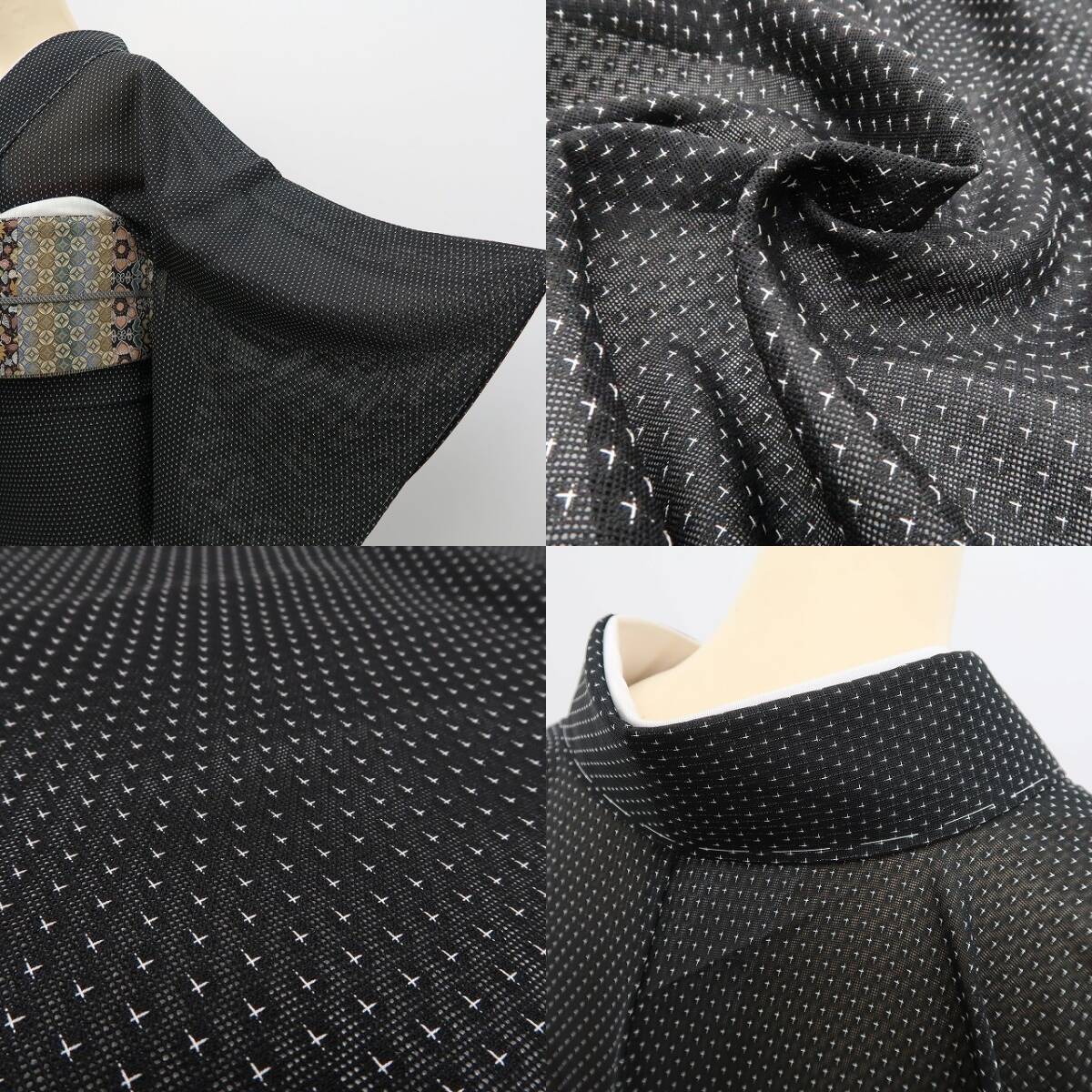 こちらは、黒地の透け感のある生地に、細かな十字文様を織り込んだ一枚。