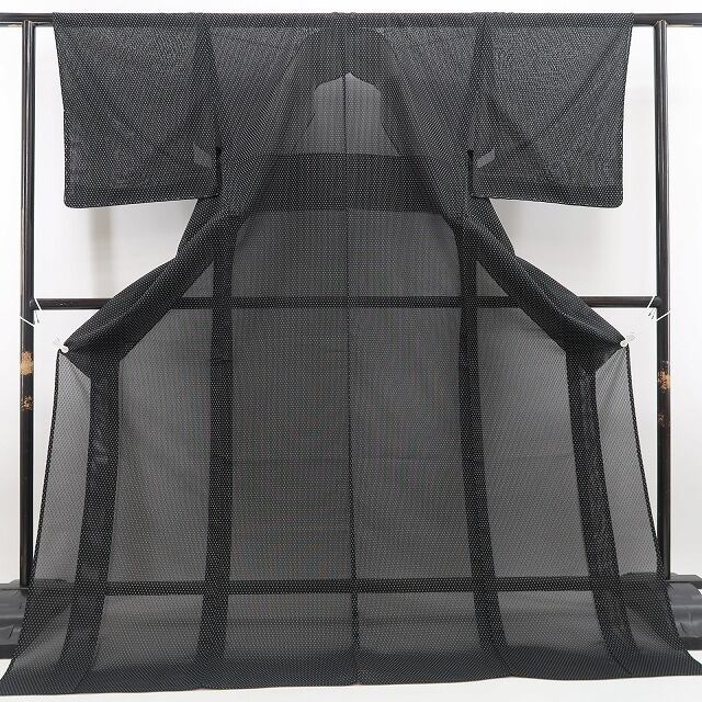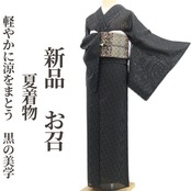 新品 夏着物 正絹 仕付け糸付“軽やかに涼をまとう、黒の美学”お召 5899