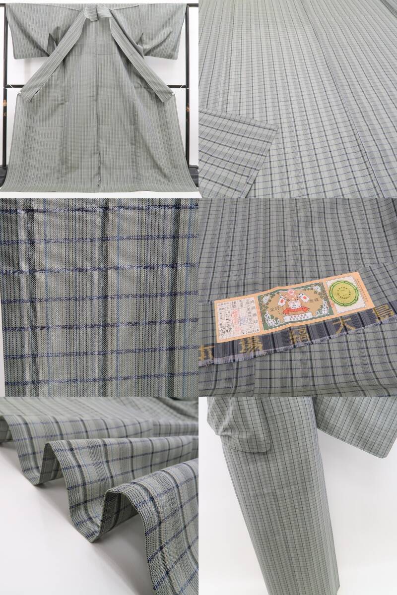 新品 紗紬 チェック柄 夏着物 正絹 仕付け糸付 証紙付“涼やかに、やさしく映える。大人の遊び心”本場大島紬 5900