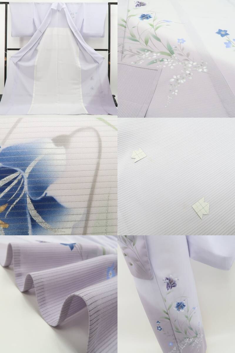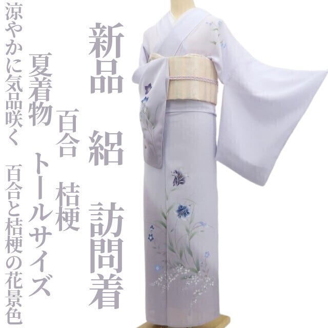 新品 絽 百合 桔梗 夏着物 正絹“涼やかに気品咲く。百合と桔梗の花景色”仕付け糸付 トールサイズ 訪問着 5902