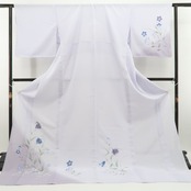 淡く上品な藤色の地に、百合と桔梗が艶やかに咲き誇る……