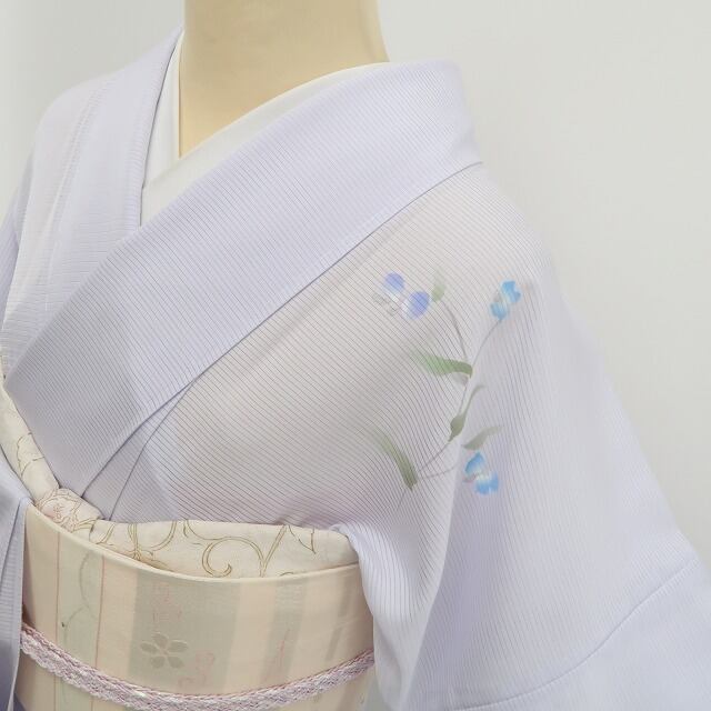 絽の生地は、透け感とさらりとした肌触りが特徴のもじり織。見た目にも清涼感があり、夏の和装にふさわしい上質な風情を漂わせます。