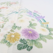 昨今、夏に和装をされる方が少なくなり希少なものとなりつつある絽のお着物は、二本の経糸を捩りながら緯糸を織り込んだもじり織で、盛夏のお召し物としてさらりとした生地質が魅力、着る方にもまた見る方にも清らかな風を感じるような涼しさを届けてくれます。