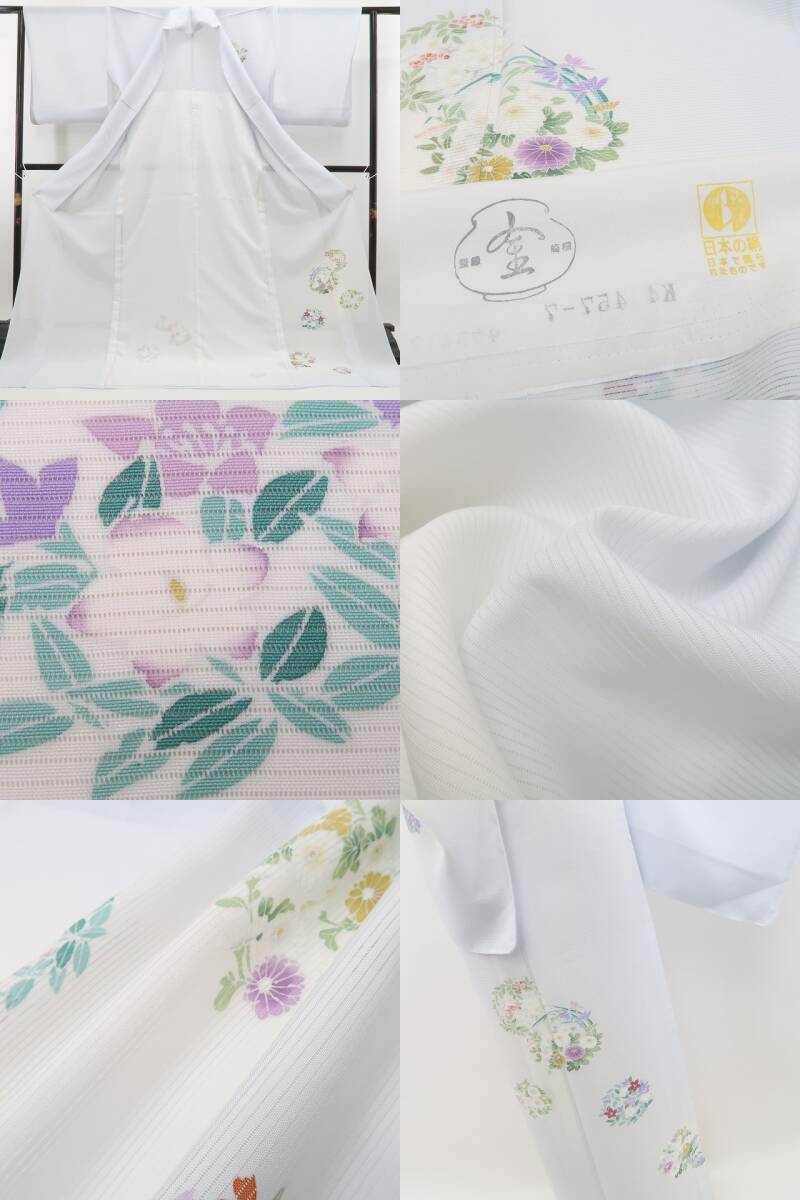 新品未使用・撮影の為だけに着付けた“仕付け糸付/手縫い仕立て”の一枚、お座りになられました時など薄手着物特有のよれを低減し、また下にお召になられましたものの透けを防止する効果を持つ居敷当て付の高級仕立てでございます。