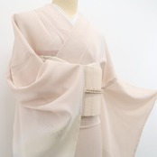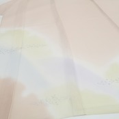 柔らかな灰桜色の優彩が誘う楚々とした風、箔散らしの煌きに幾重にも重なるデザイン雪輪の艶景色、シンプルなテーマながら巧みな意匠が醸し出す大人びた着物の奥行、それは卓越した技術に優れた感性と繊細さが創り出す創作着物の美しさ…奥深い大人の装いがお楽しみいただけるひと品でございます。