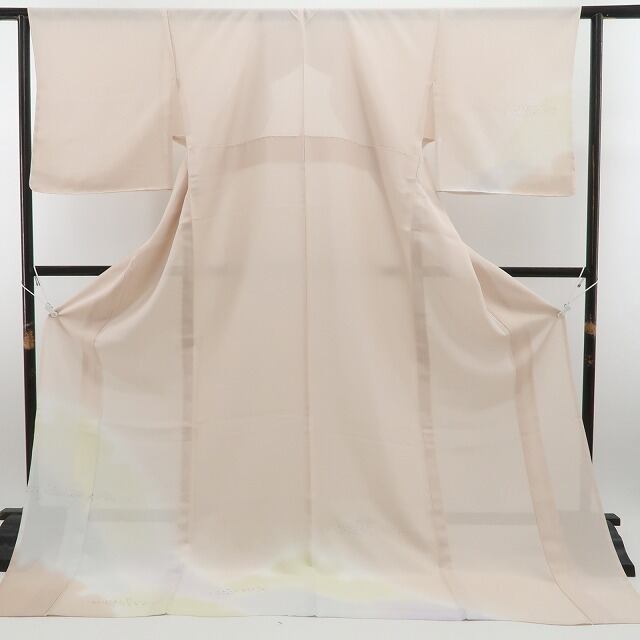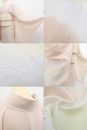こちらのお着物は、居敷当て付の高級仕立てとなっております。お座りになられました時など薄手着物特有のよれを低減し、また下にお召になられましたものの透けを防止する効果もございます。