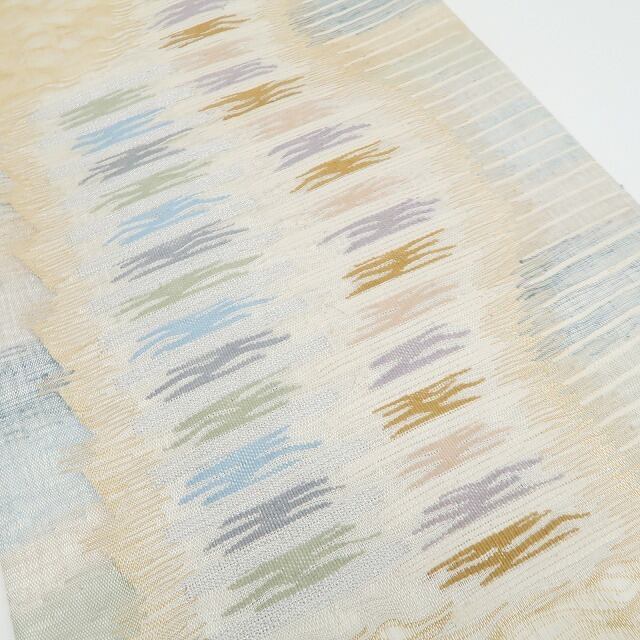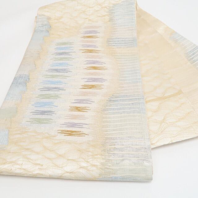 こちらの帯は、夏帯の清涼感に和モダンな美しさを引き立てるデザイン性の高い柄行を込めております。しっかりと視覚を捉える意匠力…“お洒落を楽しむ大人の奥行”として貴女のお気に入りになること間違いなし。