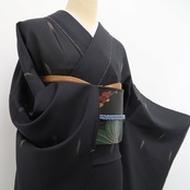 黒地にさりげなく柄が浮かぶ、紗紬の夏着物。