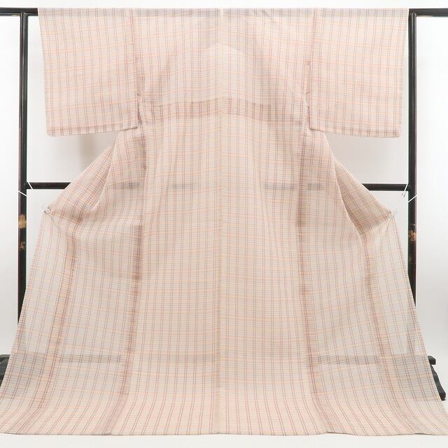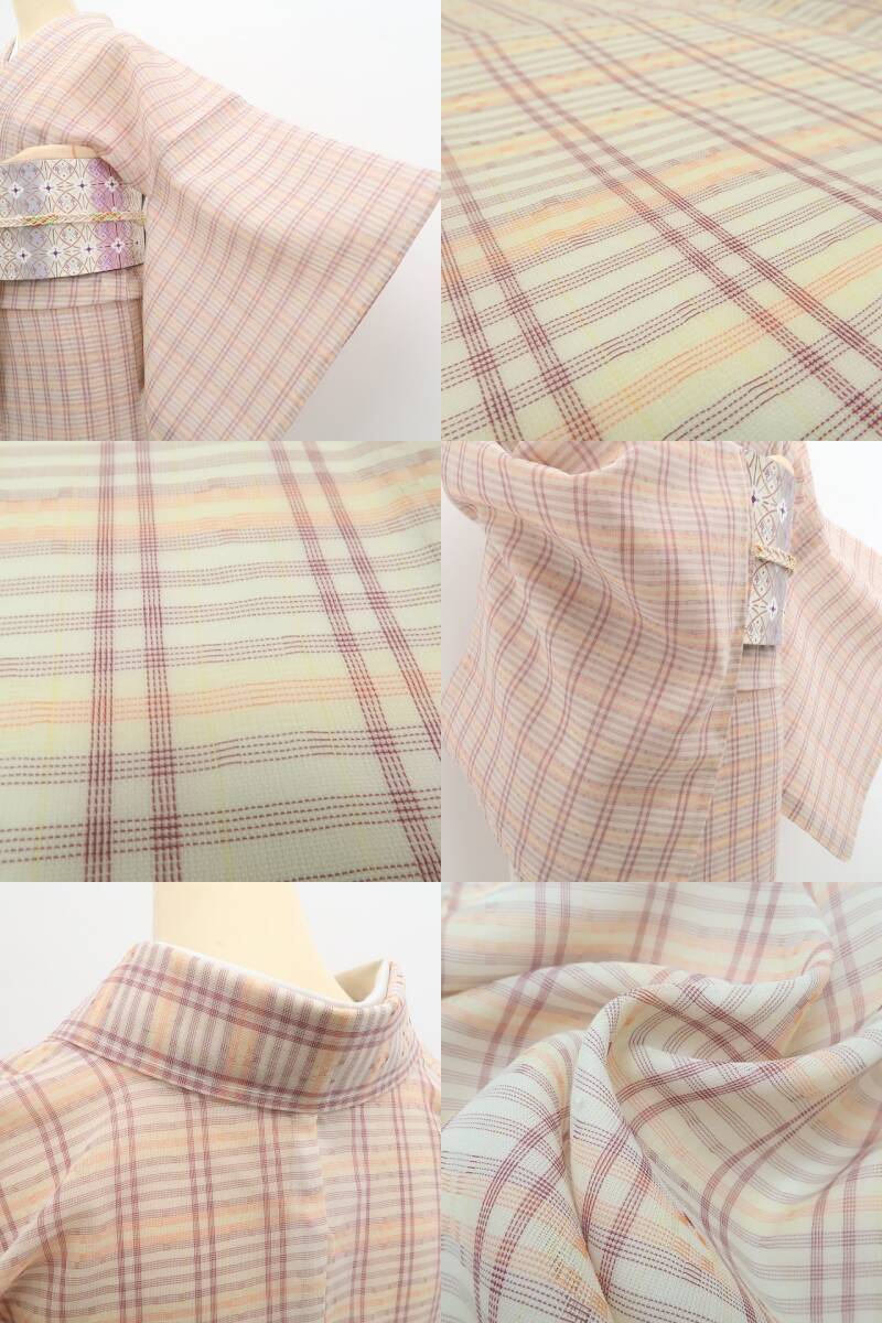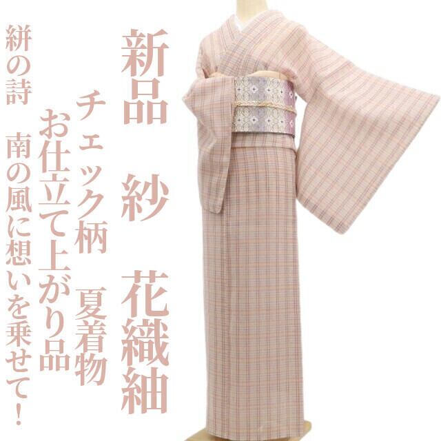新品 紗 チェック柄 お仕立て上がり品 夏着物“絣の詩…南の風に想いを乗せて!”正絹 仕付け糸付 花織紬 6028