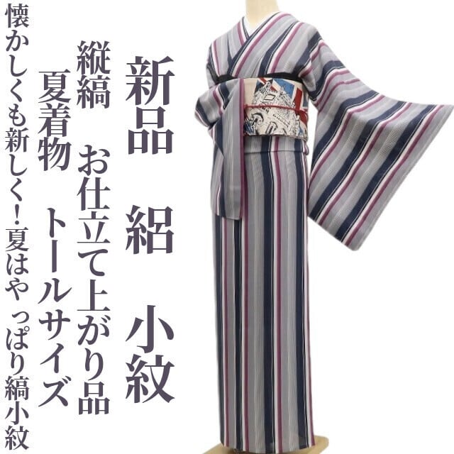 新品 絽 縦縞 お仕立て上がり品 夏着物“懐かしくも新しく!夏はやっぱり縞小紋”正絹 仕付け糸付 トールサイズ 小紋 6032