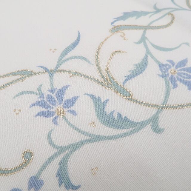 唐花文様は、中国伝来の意匠をルーツに持ち、牡丹や蓮、空想の花々が合わさった古典的なモチーフ。淡い藤色の上で優しく咲き誇り、気品と異国情緒を漂わせます。