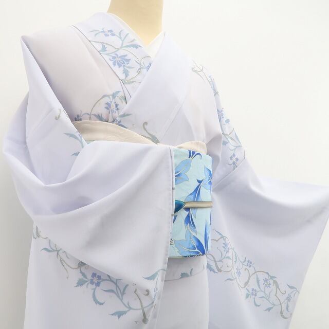淡く澄んだ藤色の地に、風にそよぐような唐花の模様が涼やかに広がる……