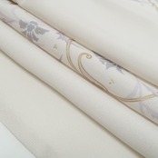 唐花文様は、中国伝来の意匠をルーツに持ち、牡丹や蓮、空想の花々が合わさった古典的なモチーフ。淡い灰梅色の中で優しく咲き誇り、気品と異国情緒を漂わせます。