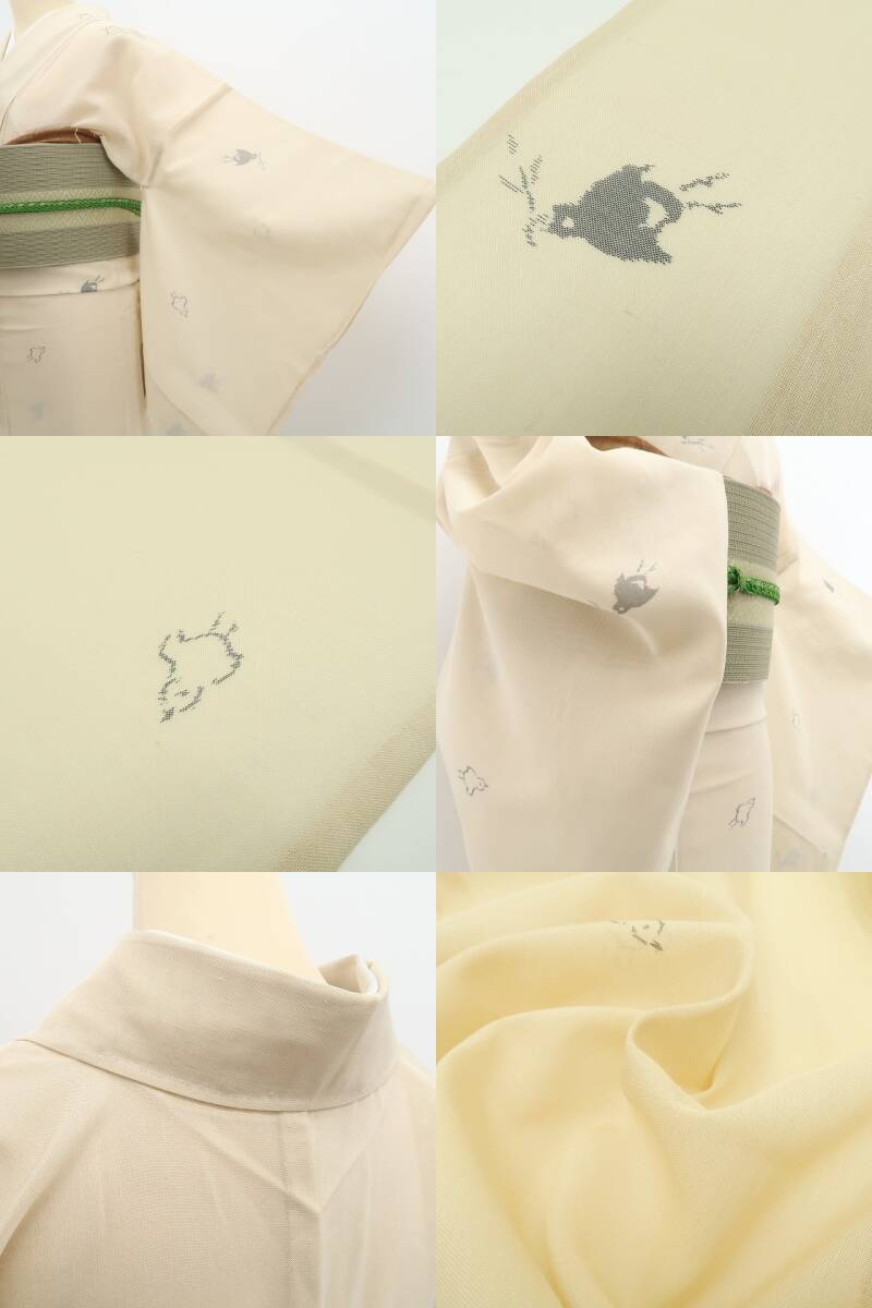 新品 紗 千鳥 夏着物 正絹 仕付け糸付“さりげない愛らしさ、小鳥と歩く夏の日” 紬 5944