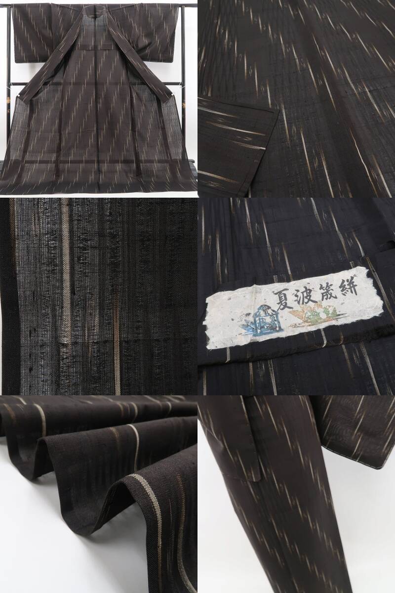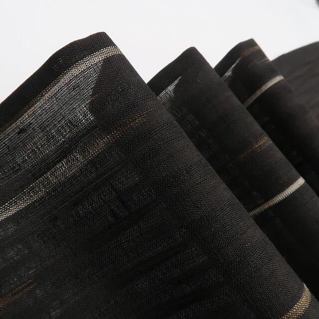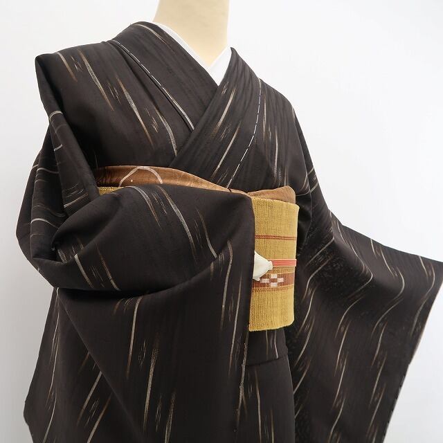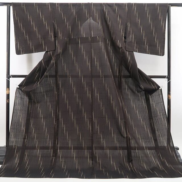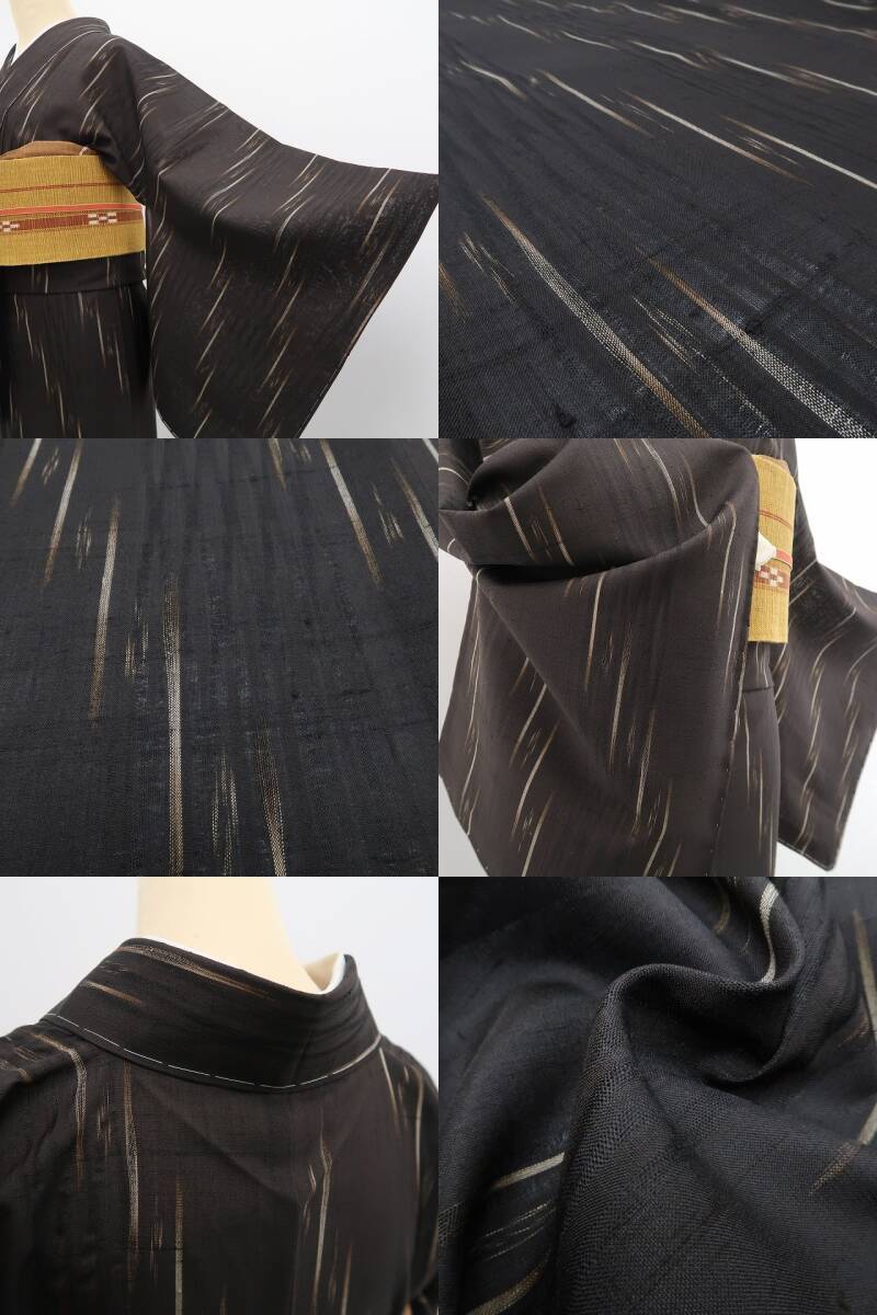 涼やかな鉄黒色の地に描き込まれた洗練モダンなデザインライン、単衣の透明感に風を趣くその表情は“夏着物の魅力”そのもの!一枚はお手元に置きたい夏紬のひと品、清々しい風合いとともに飾り気のない素朴な美しさがひと味違う夏和装の愉しみ方を届けてくれます。