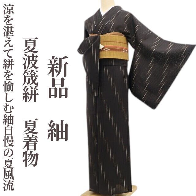 新品 夏波筬絣 夏着物“涼を湛えて絣を愉しむ紬自慢の夏風流”正絹 仕付け糸付 紬 5946