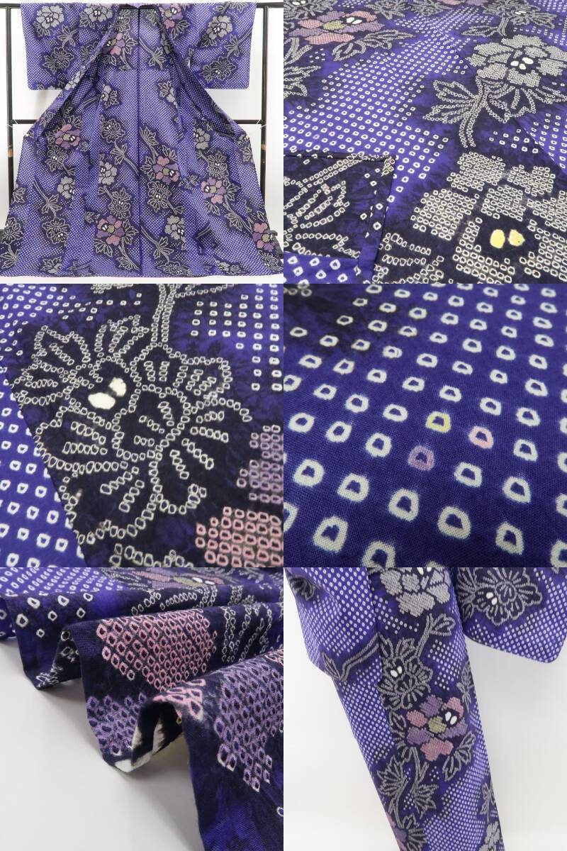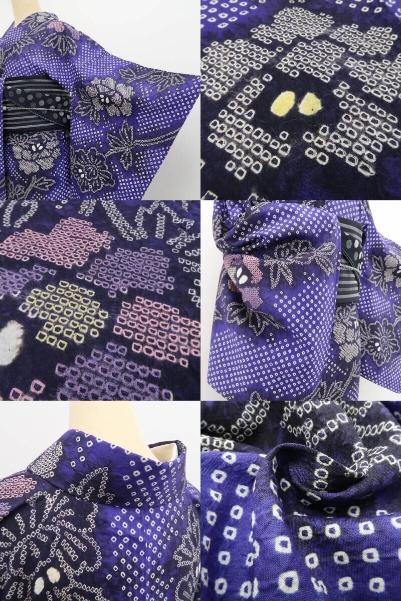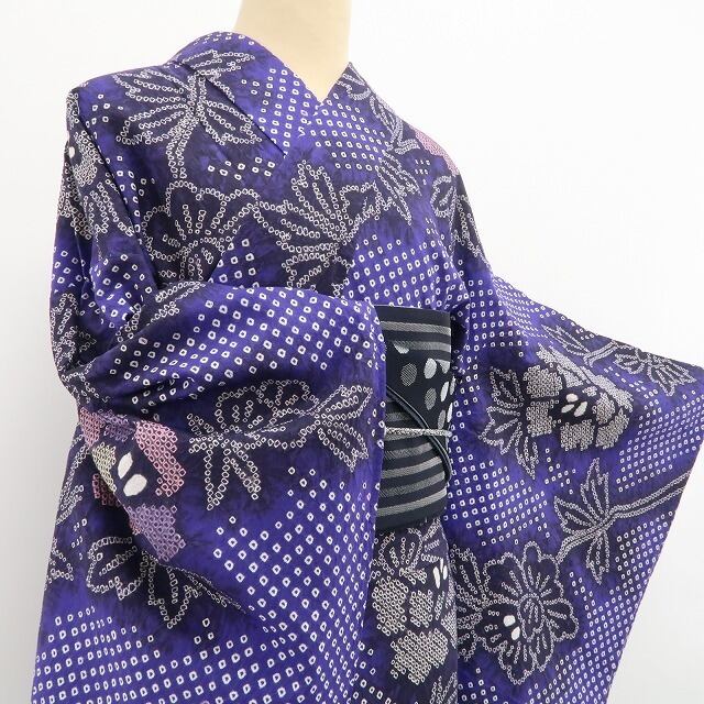 有松鳴海絞り“牡丹”夏着物 綿 仕付け糸付高級浴衣でございます。
