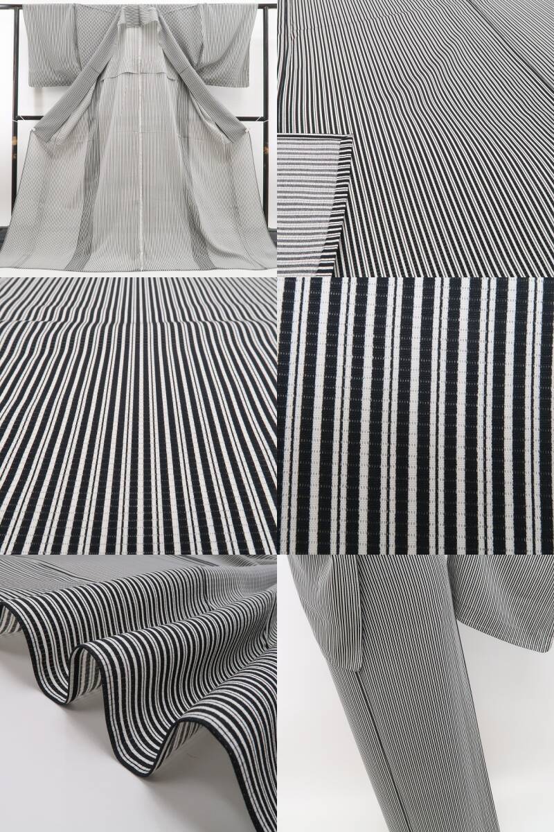 新品 絽 縦縞 モノトーン 夏着物 正絹 仕付け糸付“あらためて感動する粋な魅力”小紋 5963