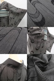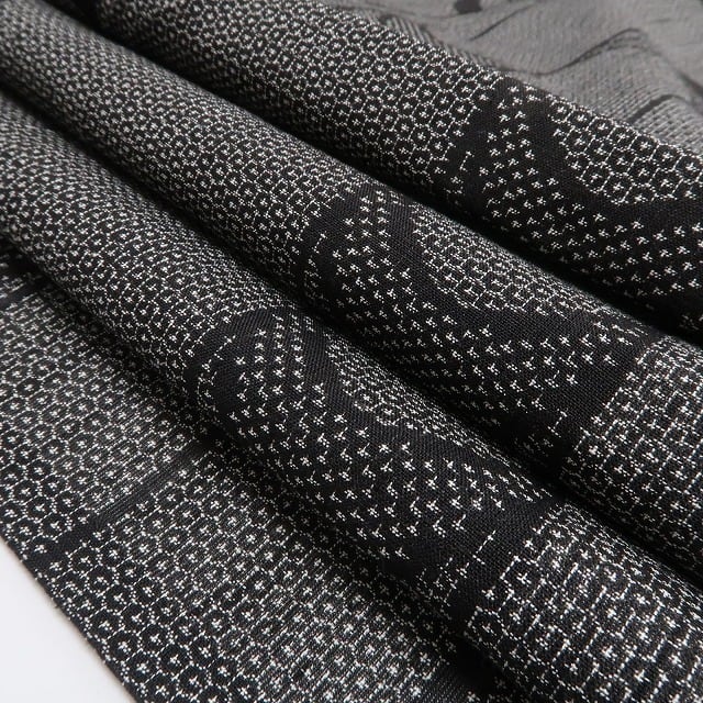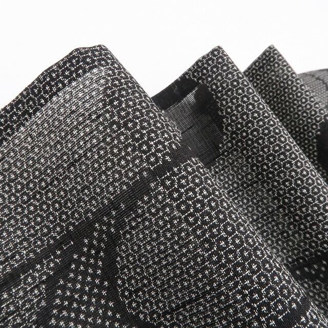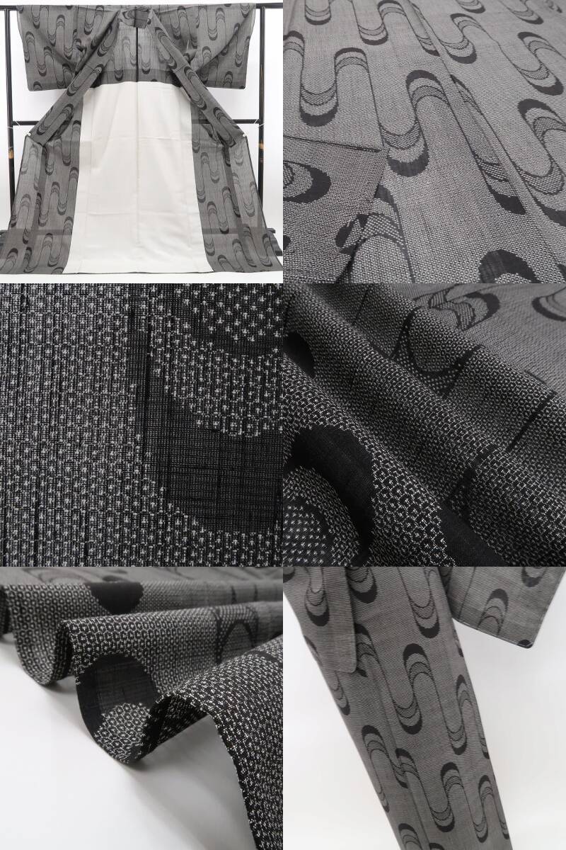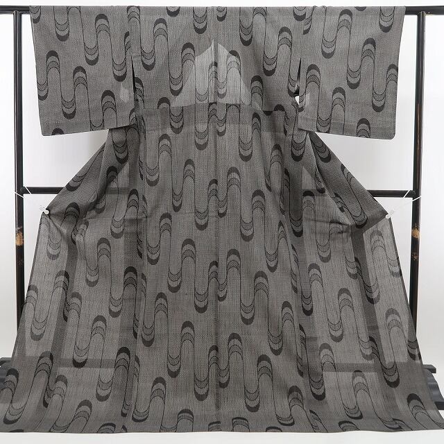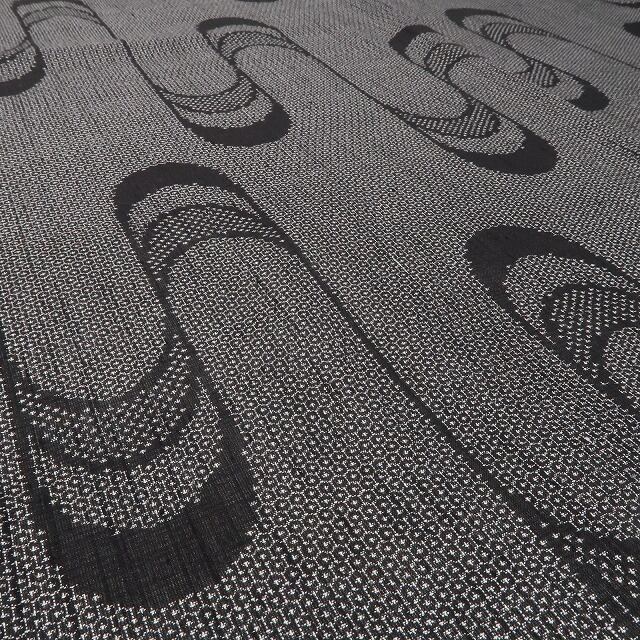 黒地にゆるやかな曲線が描かれた、モダンな印象の夏の結城紬。