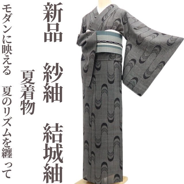 新品 紗紬 夏着物 正絹 仕付け糸付”モダンに映える、夏のリズムを纏って”結城紬 5977