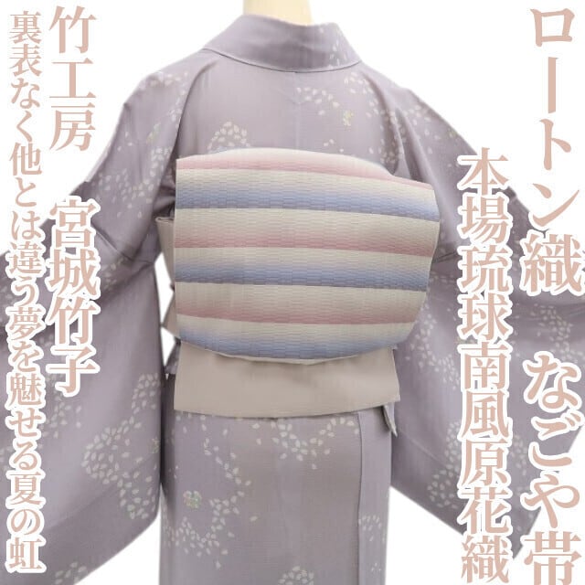 本場琉球南風原花織竹工房 宮城竹子“ロートン織”正絹なごや帯、ぜひお手にお取りくださいませ。