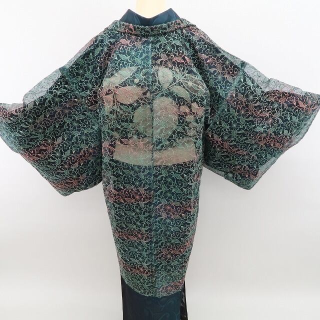 新品 オーガンジー 刺繍 唐花 夏着物 正絹 仕付け糸付 ロング丈“宙を羽ばたき、天女の羽衣を纏う時来たる”長羽織 5985