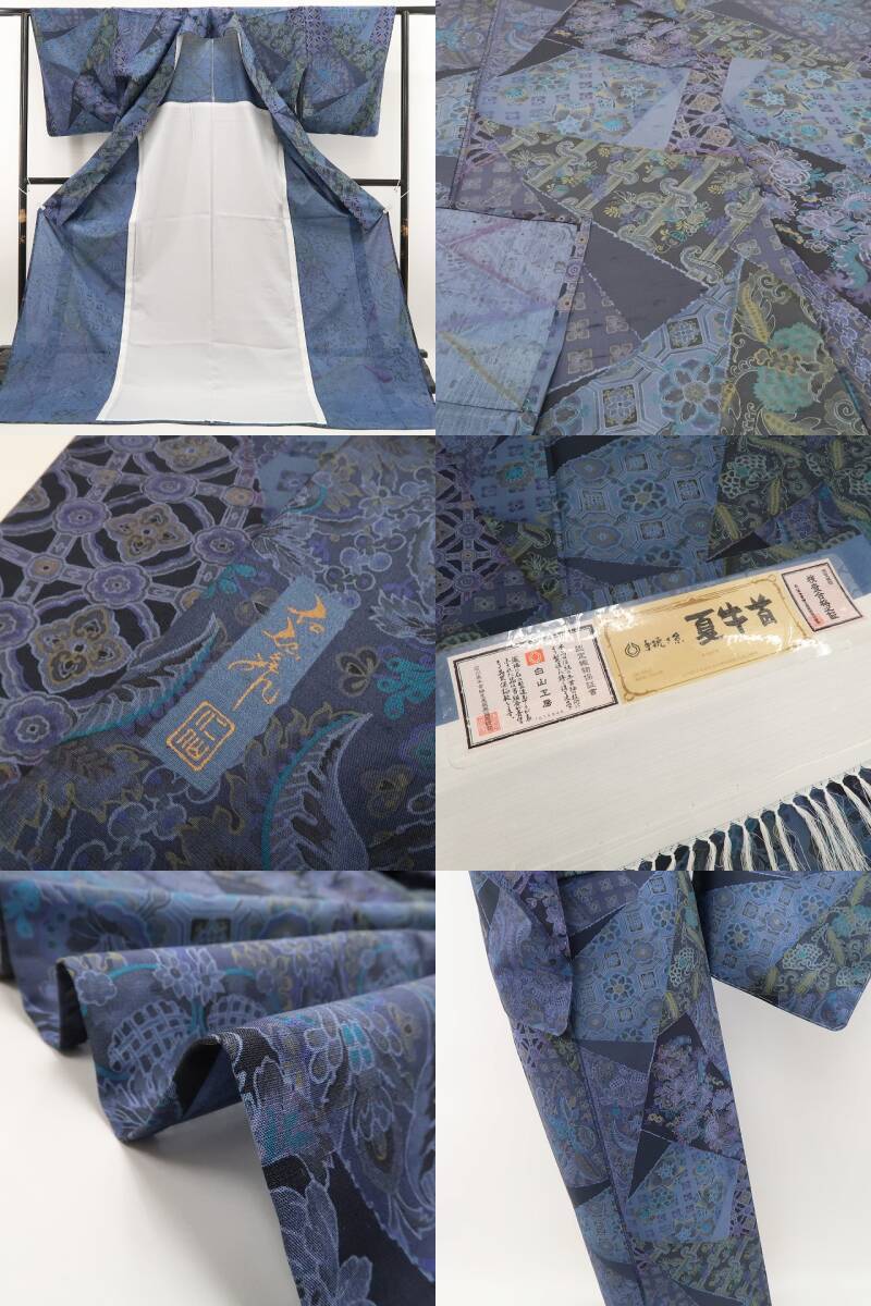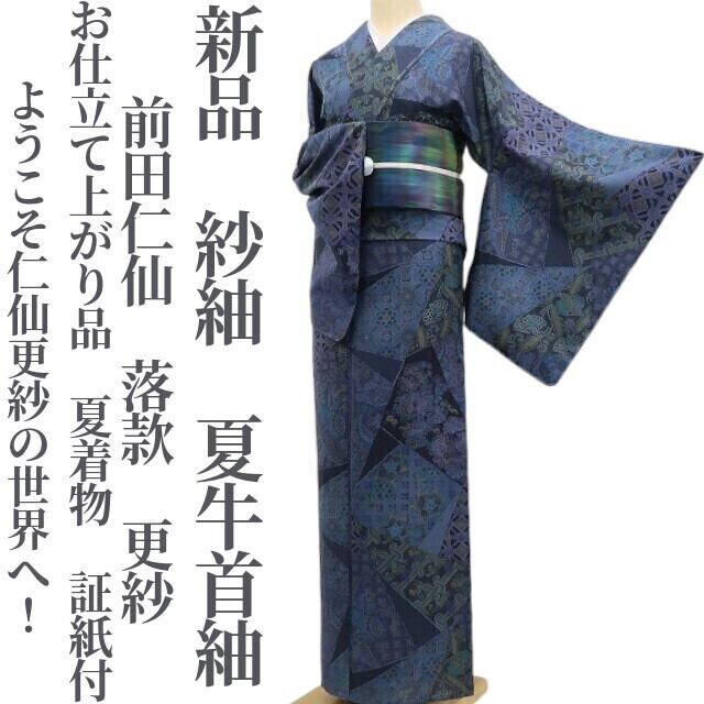 新品 紗紬 前田仁仙 落款 更紗 お仕立て上がり品 夏着物“ようこそ仁仙更紗の世界へ!”証紙付 夏牛首紬 6035