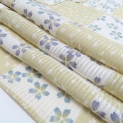 絽は、絽目の違いによりヨコに目を通した横絽と、タテに通した堅(縦)絽に分けられます。タテ糸とヨコ糸を交互に絡み合わせて組織するのが平絽、駒撚りに糸で織り上げた絽を駒絽といいます。駒絽は平絽より、しっかりとした手触りで現在の絽の多くがこれにあたります。