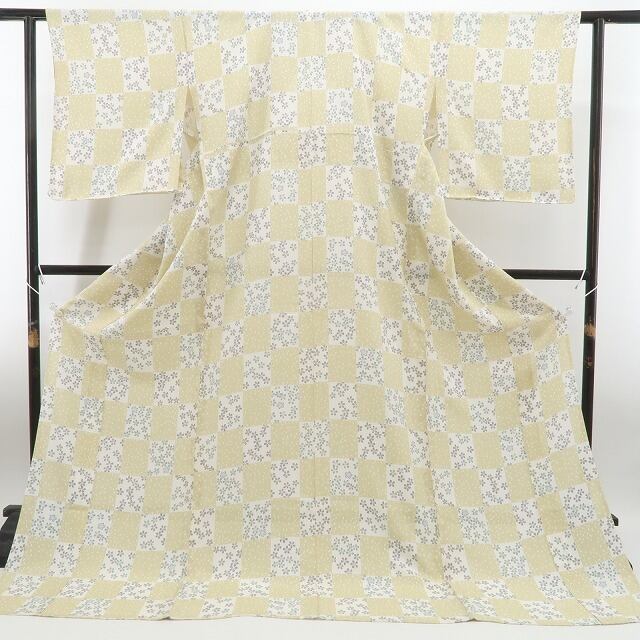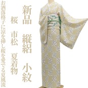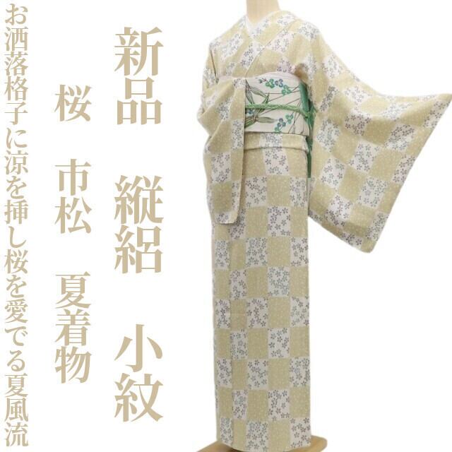 新品 縦絽 桜 市松 夏着物“お洒落格子に涼を挿し桜を愛でる夏風流”正絹 仕付け糸付 小紋 6039