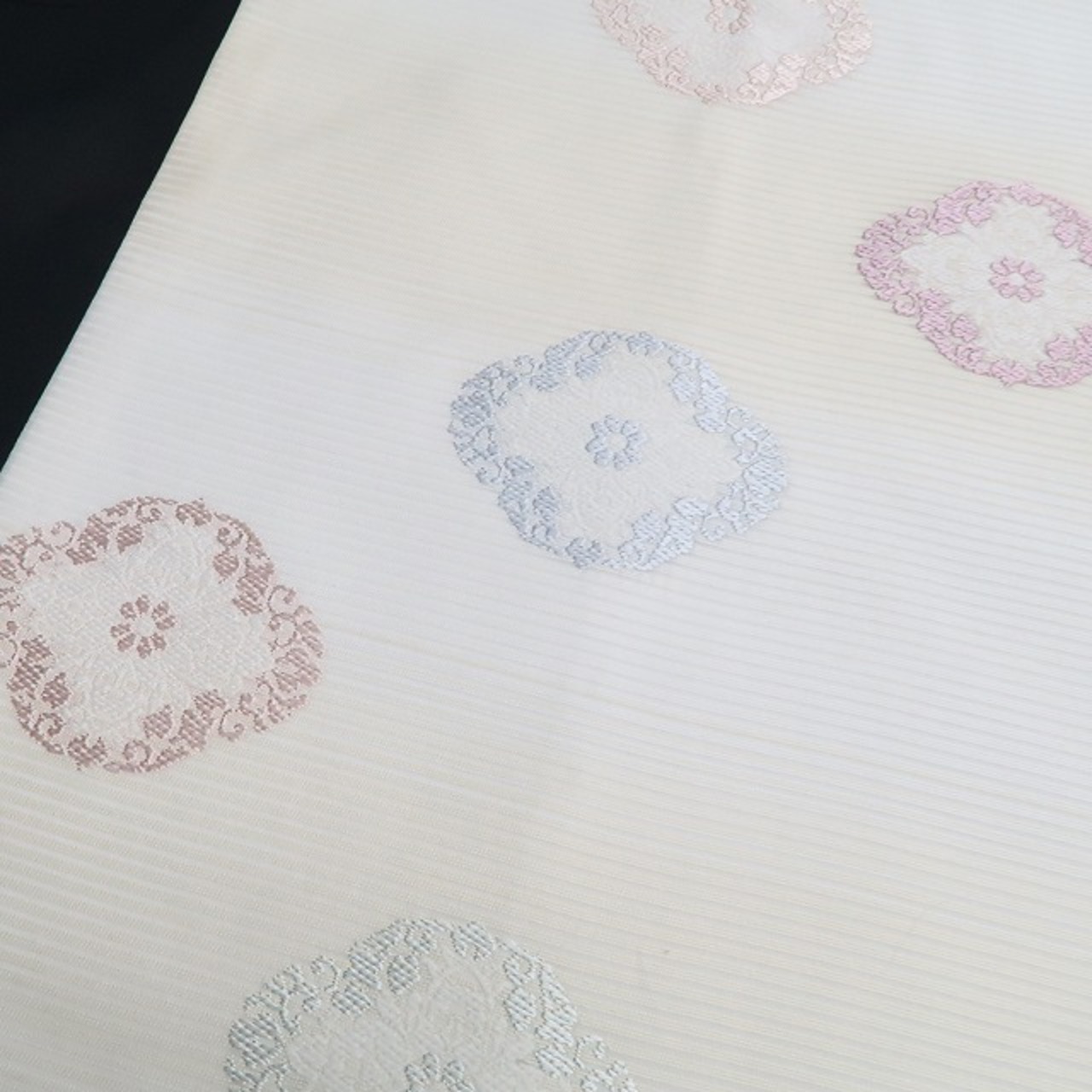 楚々とした象牙色の帯地に広がるこの上ない高級感、絽の透明感に浮かび上がる創作華文のデザインモチーフ、醸し出される爽やかな夏の煌きは必見!…それは受け継がれる確かな技が創り出す“唐織”の世界、誰をも圧倒する美しさが溢れんばかりの輝きを放っています。