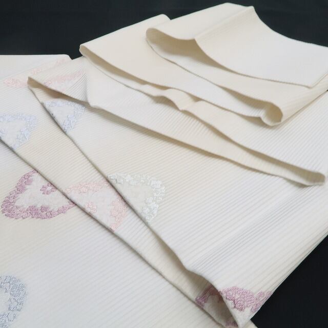 絽織は、盛夏の素材として涼しげでさらりとした生地質が魅力、着用される方は勿論、見た目にも清らかな風を感じるような涼しさを届けてくれます。また、絽のなごや帯は、(がらゆきにより)セミフォーマルなお席から、ゆったりと過ごすカジュアルなひと時まで幅広くお使いになれます。