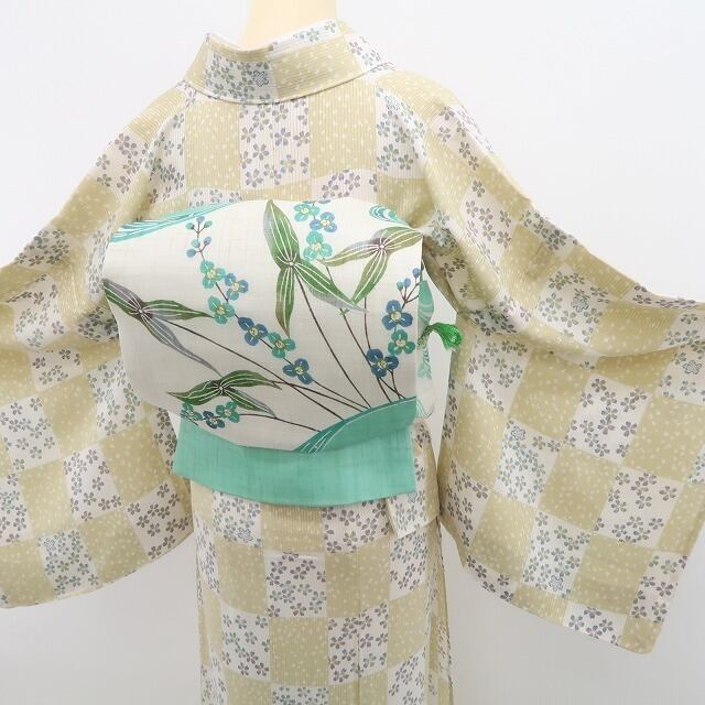 新品 本麻 栗山吉三郎 江戸紅型 流水に沢瀉 夏着物“笑顔を灯す幸せな時間”お仕立て上がり品 なごや帯 6061