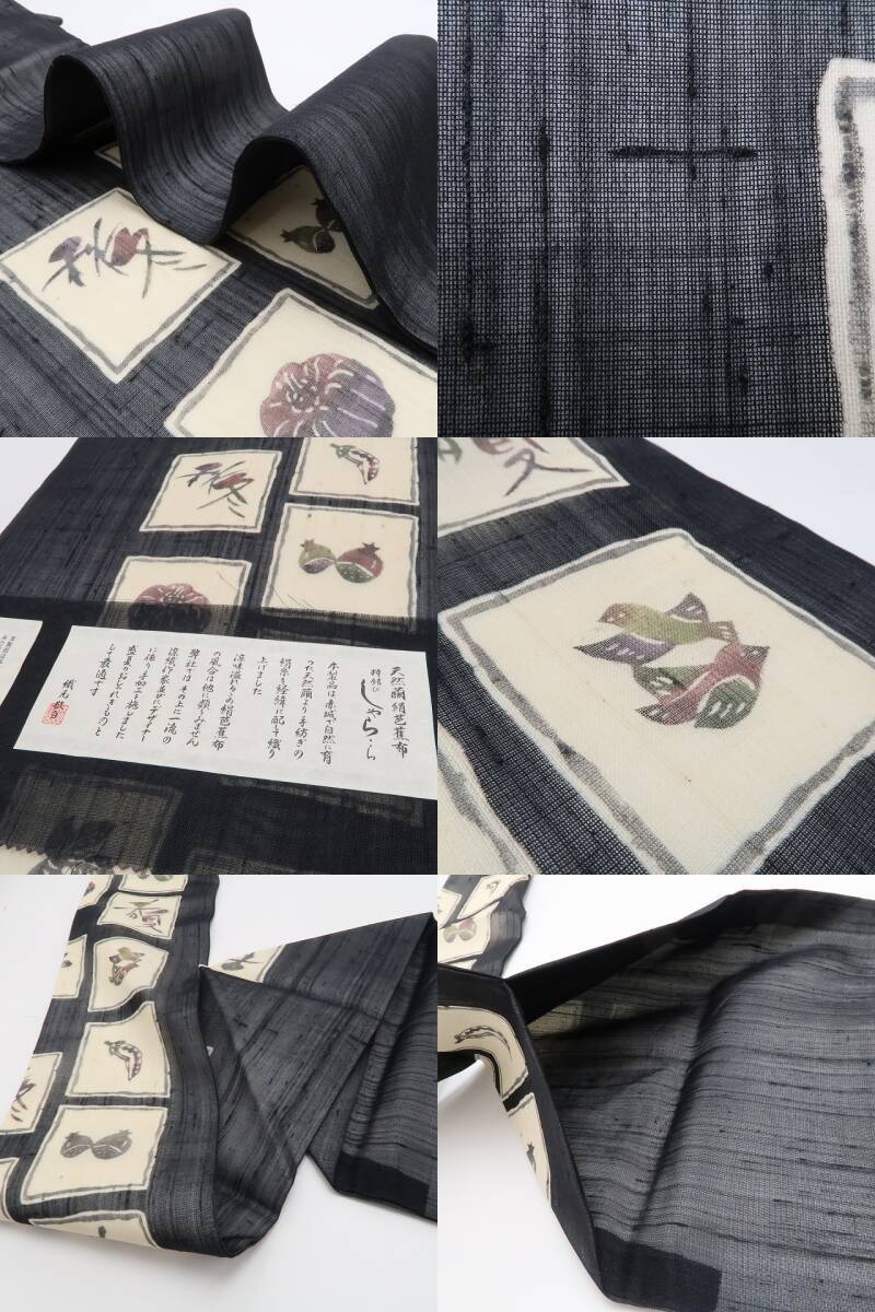 新品 紗紬 野菜柄 夏着物“季節の風に想いを綴り心癒して絹芭蕉”正絹絹芭蕉 なごや帯 6062