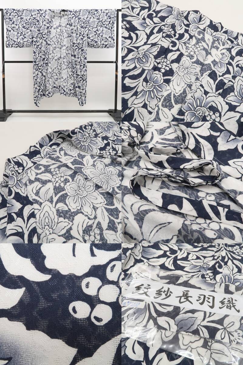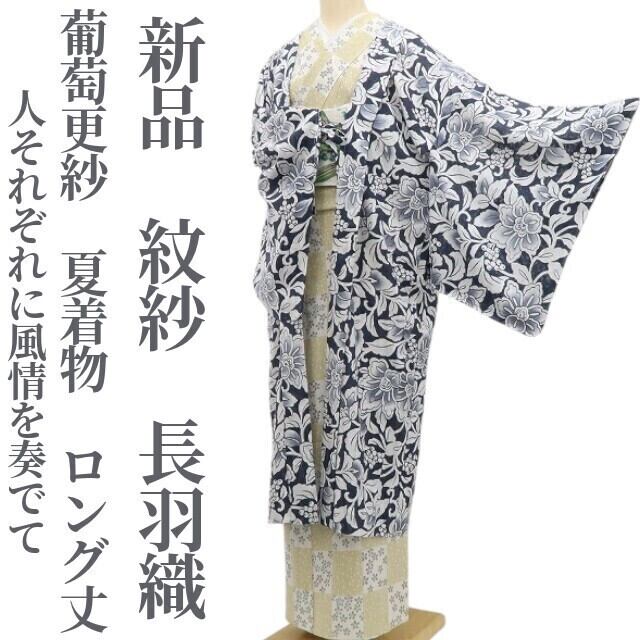 新品 紋紗 葡萄更紗 夏着物 正絹“更紗で叶う大人の魅力!人それぞれに風情を奏でて”仕付け糸付 ロング丈 長羽織 6064