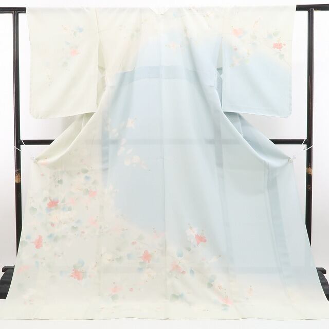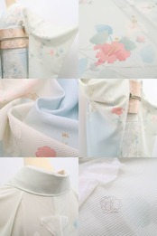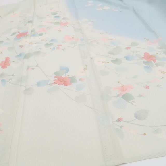 淡く優しい色彩のハイビスカスが咲く、夏の訪問着でございます。