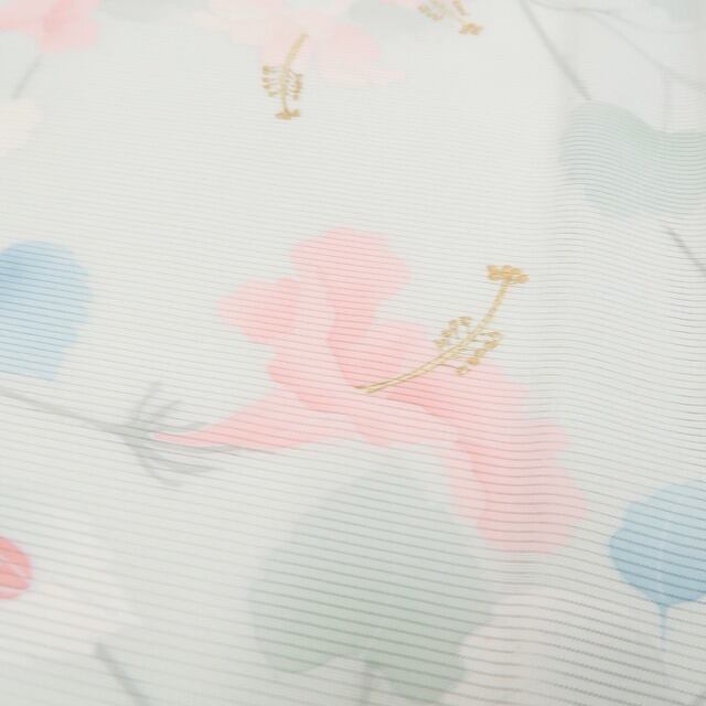新品 絽 手描き友禅 ハイビスカス 夏着物 正絹 仕付け糸付”涼やかに淡く咲き誇る、夏のハイビスカス”訪問着 6073
